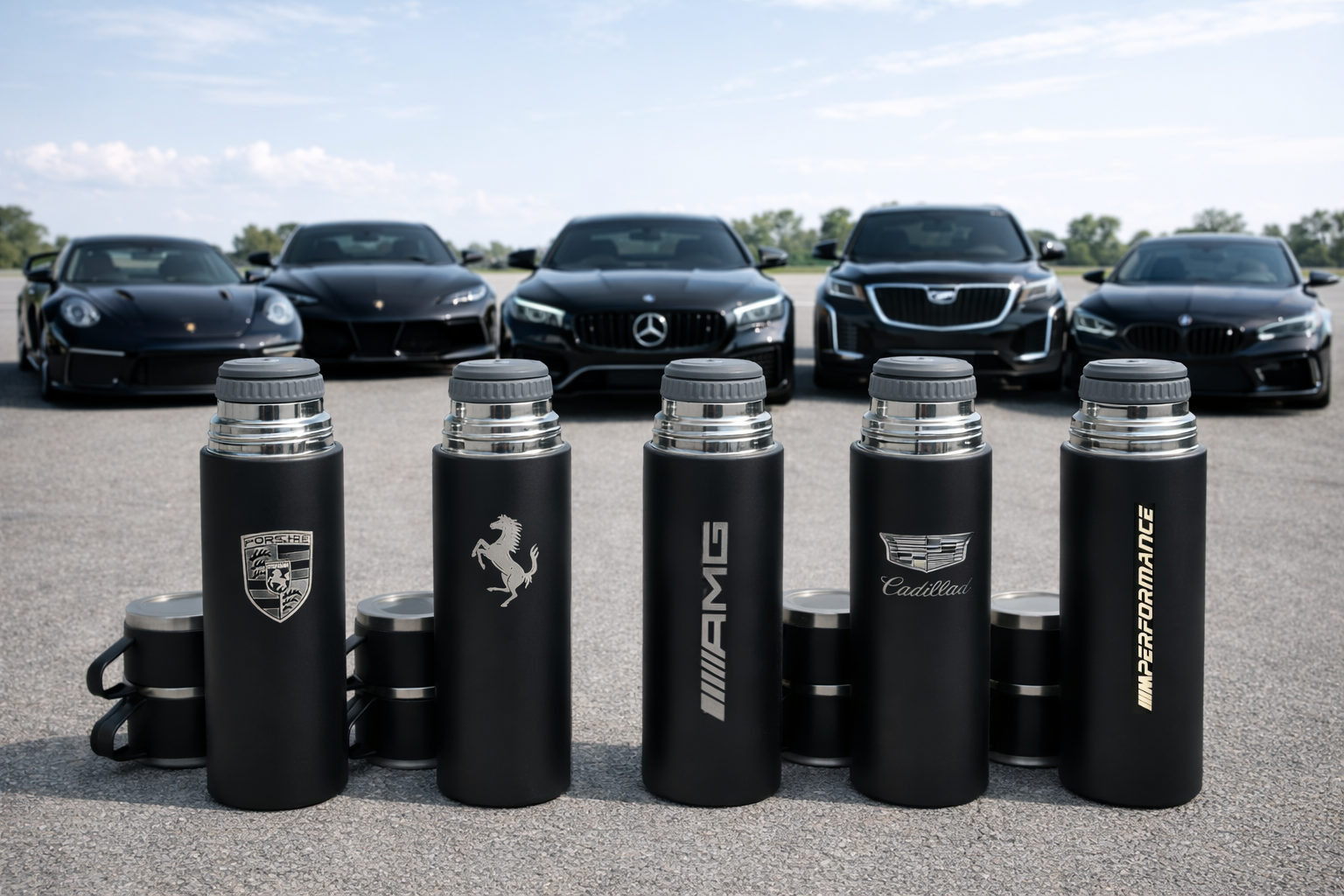 Maserati Laser Logo Thermos Set 500 ml – Insulated Flask with 3 Cups